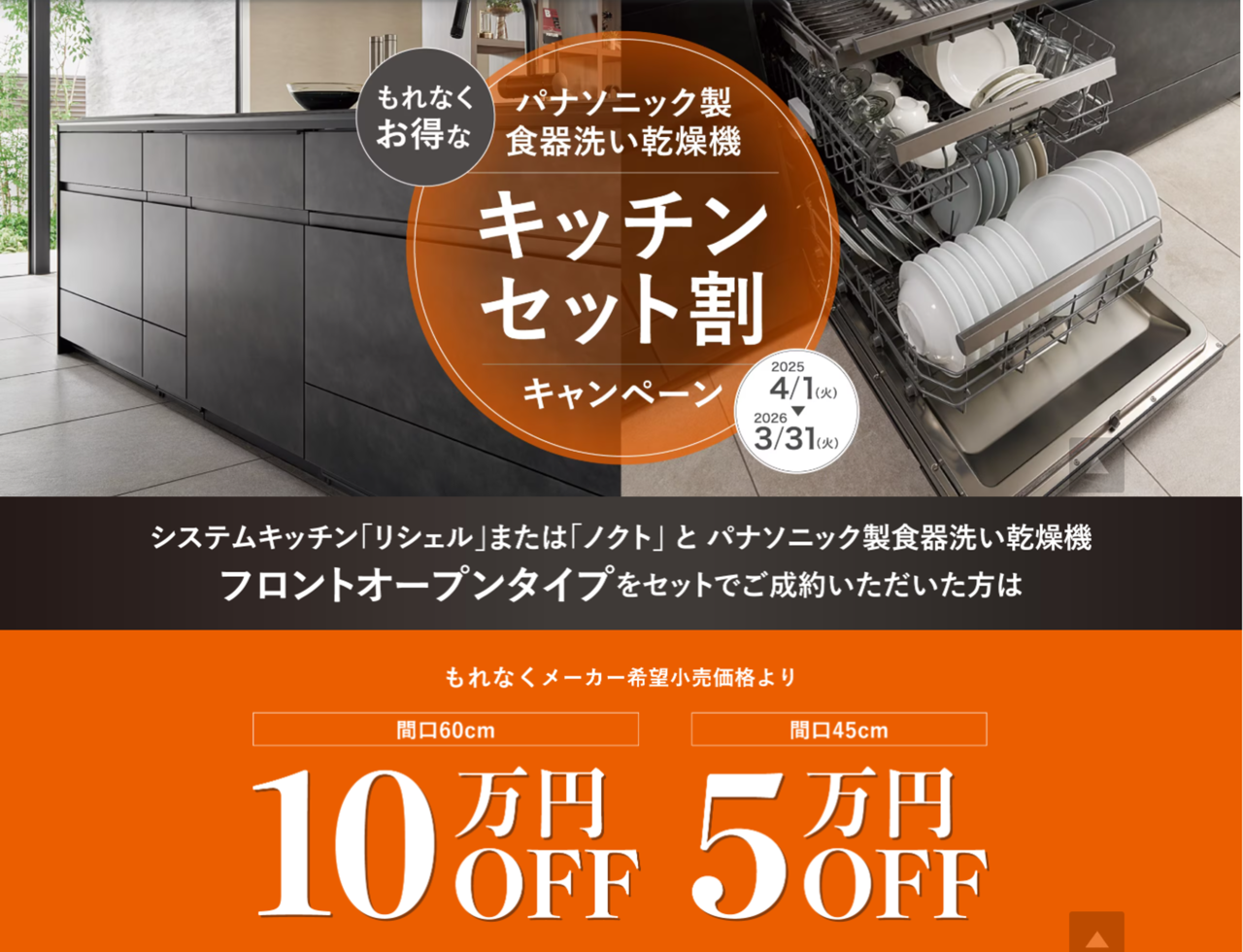 食器洗い乾燥機フロントオープンタイプをセットでご成約頂いた方は最大10万円OFF